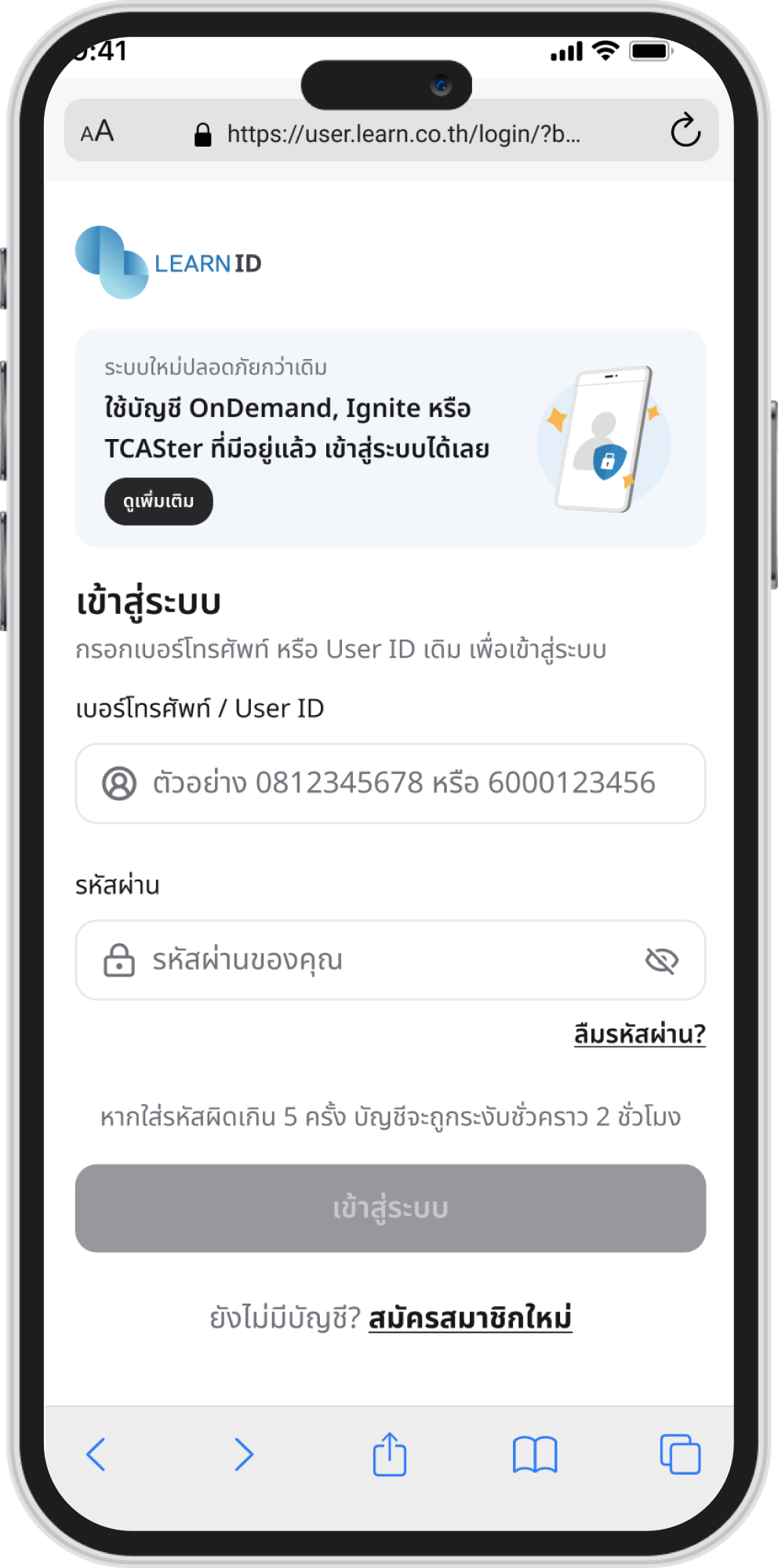 เพื่อเข้าสู่ระบบการเรียนของคุณ